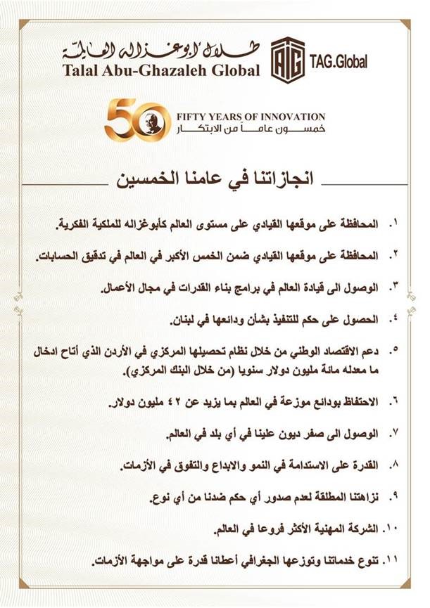 تفخر طلال أبوغزاله العالمية الرقمية بالعلاقات والخدمات التي طورتها على مدى أكثر من 50 عاما من العمل في العالم . فلقد بنينا علاقات تعاضد قوية مع الهيئات المالية والتنموية في جميع أنحاء العالم ومع الأمم المتحدة ومنظمة التجارة العالمية والبنك الدولي وغرفة التجارة الدولية وغيرها الكثير. ولدينا ...